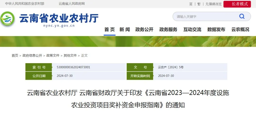 為促進云南省設(shè)施農(nóng)業(yè)生產(chǎn)提檔升級和全產(chǎn)業(yè)鏈發(fā)展,根據(jù)相關(guān)文件要求,云南省農(nóng)業(yè)農(nóng)村廳、云南省財政廳制定《云南省2023—2024年度設(shè)施農(nóng)業(yè)投資項目獎補資金申報指南》,要求加大政策宣傳力度,確保符合條件的農(nóng)業(yè)生產(chǎn)經(jīng)營主體及時了解相關(guān)政策,積極組織申報,公開公平公正遴選項目,切實推進政策落實落地。