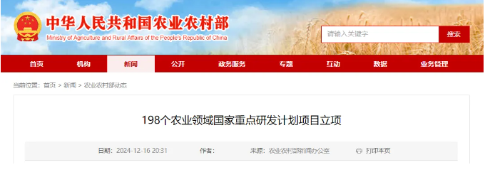 農(nóng)業(yè)農(nóng)村部深入學(xué)習(xí)貫徹習(xí)近平總書記重要指示批示精神和黨中央、國務(wù)院決策部署,認(rèn)真落實全國科技大會精神,在科技部的指導(dǎo)下,不斷改進(jìn)科技計劃管理,探索和實踐具有農(nóng)業(yè)特色的產(chǎn)業(yè)科技組織模式,加快推進(jìn)高水平農(nóng)業(yè)科技自立自強(qiáng)。近期,農(nóng)業(yè)農(nóng)村部組織開展了主責(zé)的國家重點研發(fā)計劃重點專項(以下簡稱“重點專項”)2024年度項目立項工作,“主要作物豐產(chǎn)增效科技創(chuàng)新工程”等14個重點專項立項了198個項目。