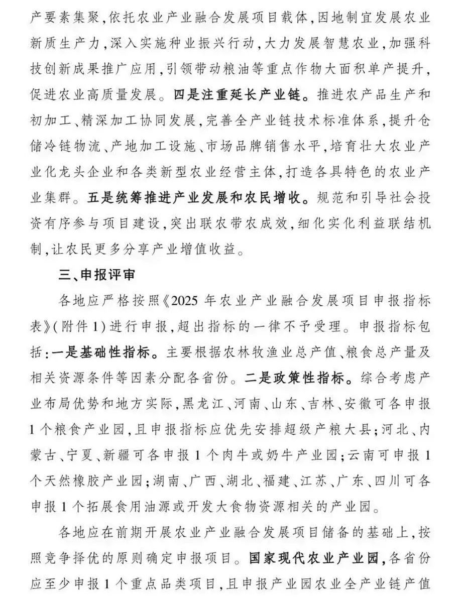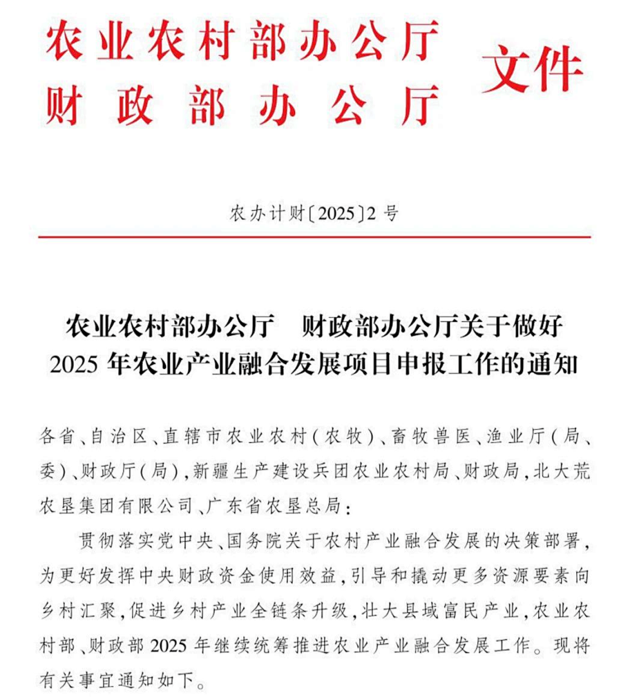 農(nóng)業(yè)農(nóng)村部2025年農(nóng)業(yè)產(chǎn)業(yè)融合發(fā)展項(xiàng)目申報(bào)工作已正式啟動(dòng),與2024年相比,今年的申報(bào)重點(diǎn)包括: