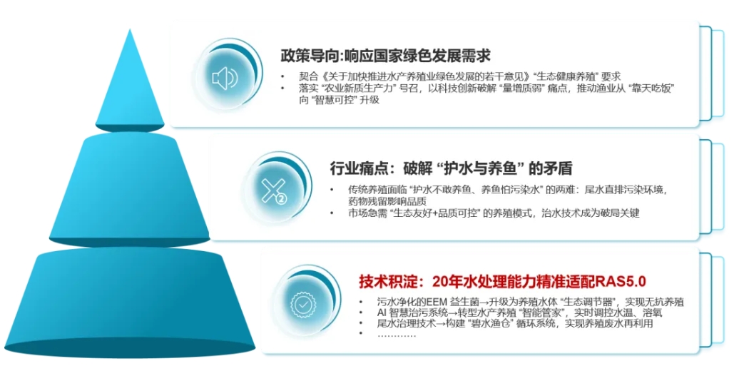 當(dāng)前,全球水產(chǎn)養(yǎng)殖正面臨資源約束、環(huán)境壓力與消費(fèi)升級(jí)等多重挑戰(zhàn)。2025 年中央一號(hào)文件明確提出“發(fā)展現(xiàn)代設(shè)施農(nóng)業(yè)”“培育農(nóng)業(yè)新質(zhì)生產(chǎn)力”,為水產(chǎn)養(yǎng)殖向綠色化、智能化轉(zhuǎn)型指明方向。在此背景下,RAS循環(huán)水養(yǎng)殖技術(shù)(Recirculating Aquaculture System)成為破局關(guān)鍵,但行業(yè)仍面臨“投資成本高、運(yùn)營(yíng)技術(shù)難、標(biāo)準(zhǔn)化缺失”等痛點(diǎn)。