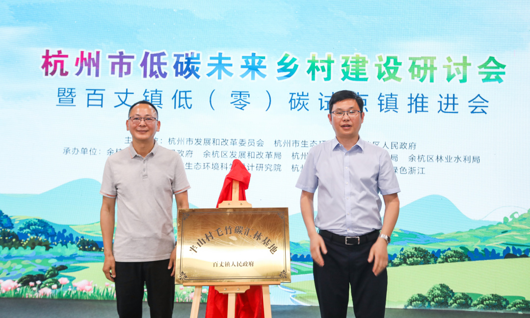 本次活動由杭州市發(fā)展和改革委員會、杭州市生態(tài)環(huán)境局、余杭區(qū)人民政府主辦,百丈鎮(zhèn)人民政府、余杭區(qū)發(fā)展和改革局、杭州市生態(tài)環(huán)境局余杭分局、余杭區(qū)林業(yè)水利局等共同承辦。來自省市區(qū)低碳領域的專家、高校學者參與了現場討論,并針對低(零)碳試點鄉(xiāng)鎮(zhèn)具體工作進行了研討。浙江農林大學農村環(huán)境研究所所長鄭展望教授受邀參會并為百丈鎮(zhèn)半山村竹林碳匯基地揭牌。