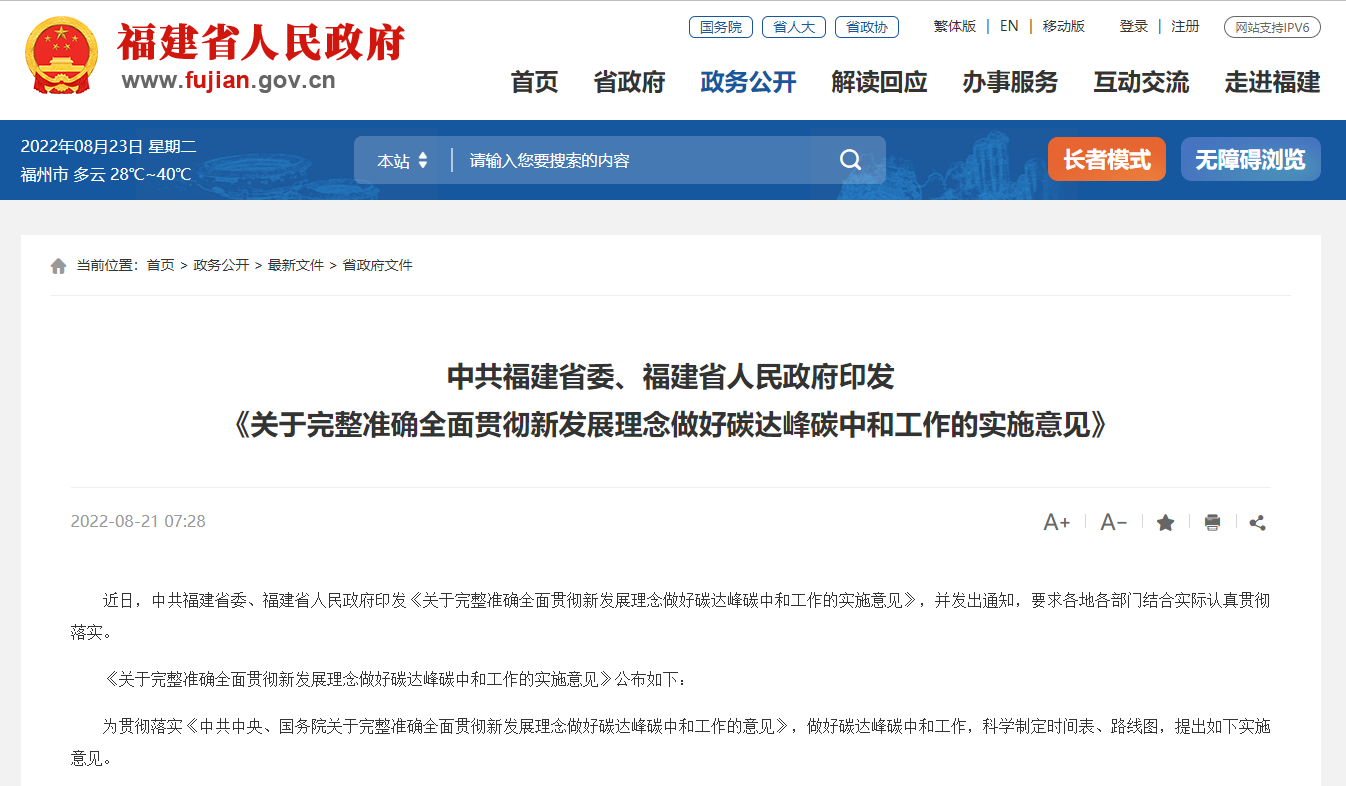 近日,中共福建省委、福建省人民政府印發(fā)《關(guān)于完整準(zhǔn)確全面貫徹新發(fā)展理念做好碳達(dá)峰碳中和工作的實(shí)施意見》,并發(fā)出通知,要求各地各部門結(jié)合實(shí)際認(rèn)真貫徹落實(shí)。關(guān)于提升城鄉(xiāng)建設(shè)綠色低碳發(fā)展質(zhì)量方面,《實(shí)施意見》指出要結(jié)合推進(jìn)鄉(xiāng)村振興和實(shí)施鄉(xiāng)村建設(shè)行動(dòng),加快推進(jìn)縣城和農(nóng)村綠色低碳發(fā)展。促進(jìn)城鄉(xiāng)建設(shè)和管理模式低碳轉(zhuǎn)型。將綠色低碳要求全面落實(shí)到城鄉(xiāng)規(guī)劃建設(shè)管理各環(huán)節(jié),推動(dòng)建立以綠色低碳為導(dǎo)向的城鄉(xiāng)建設(shè)管理機(jī)制。《關(guān)于完整準(zhǔn)確全面貫徹新發(fā)展理念做好碳達(dá)峰碳中和工作的實(shí)施意見》公布如下:為貫徹落實(shí)《中共中央、國務(wù)院關(guān)于完整準(zhǔn)確全面貫徹新發(fā)展理念做好碳達(dá)峰碳中和工作的意見》,做好碳達(dá)峰碳中和工作,科學(xué)制定時(shí)間表、路線圖,提出如下實(shí)施意見。一、總體要求以習(xí)近平新時(shí)代中國特色社會(huì)主義思想為指導(dǎo),全面貫徹黨的十九大和十九屆歷次全會(huì)精神,深入貫徹習(xí)近平生態(tài)文明思想,認(rèn)真貫徹落實(shí)習(xí)近平總書記來閩考察重要講話精神,按照省第十一次黨代會(huì)的部署,立足新發(fā)展階段,完整、準(zhǔn)確、全面貫徹新發(fā)展理念,積極服務(wù)和深度融入新發(fā)展格局,把碳達(dá)峰碳中和納入經(jīng)濟(jì)社會(huì)發(fā)展和生態(tài)省建設(shè)布局,科學(xué)統(tǒng)籌全方位推進(jìn)高質(zhì)量發(fā)展超越和實(shí)現(xiàn)碳達(dá)峰碳中和,堅(jiān)持“全國統(tǒng)籌、節(jié)約優(yōu)先、雙輪驅(qū)動(dòng)、內(nèi)外暢通、防范風(fēng)險(xiǎn)”原則,以經(jīng)濟(jì)社會(huì)全面綠色轉(zhuǎn)型為引領(lǐng),以能源綠色低碳發(fā)展為關(guān)鍵,深化國家生態(tài)文明試驗(yàn)區(qū)建設(shè),正確處理好發(fā)展和減排、整體和局部、長遠(yuǎn)目標(biāo)和短期目標(biāo)、政府和市場的關(guān)系,堅(jiān)定不移走生態(tài)優(yōu)先、綠色低碳的高質(zhì)量發(fā)展道路,奮力譜寫全面建設(shè)社會(huì)主義現(xiàn)代化國家福建篇章。二、主要目標(biāo)到2025年,綠色低碳循環(huán)發(fā)展的經(jīng)濟(jì)體系初步形成,重點(diǎn)行業(yè)能源利用效率大幅提升。單位地區(qū)生產(chǎn)總值能耗和二氧化碳排放下降完成國家下達(dá)目標(biāo);非化石能源消費(fèi)比重達(dá)到27.40%;森林覆蓋率比2020年增加0.12個(gè)百分點(diǎn),森林蓄積量達(dá)到7.79億立方米,為實(shí)現(xiàn)碳達(dá)峰碳中和奠定堅(jiān)實(shí)基礎(chǔ)。到2030年,經(jīng)濟(jì)社會(huì)發(fā)展綠色低碳轉(zhuǎn)型取得顯著成效,重點(diǎn)耗能行業(yè)能源利用效率達(dá)到國際先進(jìn)水平。單位地區(qū)生產(chǎn)總值能耗大幅下降;單位地區(qū)生產(chǎn)總值二氧化碳排放比2005年下降65%以上;非化石能源消費(fèi)比重達(dá)到30%以上,風(fēng)電、太陽能發(fā)電總裝機(jī)容量達(dá)到2000萬千瓦以上;森林覆蓋率比2020年增加0.19個(gè)百分點(diǎn),森林蓄積量達(dá)到8億立方米,二氧化碳排放量達(dá)到峰值并實(shí)現(xiàn)穩(wěn)中有降。到2060年,綠色低碳循環(huán)發(fā)展的經(jīng)濟(jì)體系和清潔低碳安全高效的能源體系全面建立,能源利用效率達(dá)到國際先進(jìn)水平,非化石能源消費(fèi)比重達(dá)到80%以上,碳中和目標(biāo)順利實(shí)現(xiàn),生態(tài)文明建設(shè)取得豐碩成果,開創(chuàng)人與自然和諧共生新境界。三、推進(jìn)經(jīng)濟(jì)社會(huì)發(fā)展全面綠色轉(zhuǎn)型(一)強(qiáng)化綠色低碳發(fā)展規(guī)劃引領(lǐng)。強(qiáng)化戰(zhàn)略導(dǎo)向,將碳達(dá)峰碳中和目標(biāo)要求全面融入全省經(jīng)濟(jì)社會(huì)發(fā)展中長期規(guī)劃和生態(tài)省規(guī)劃,加強(qiáng)省級(jí)發(fā)展規(guī)劃、國土空間規(guī)劃、專項(xiàng)規(guī)劃、區(qū)域規(guī)劃和市縣級(jí)規(guī)劃等各級(jí)各類規(guī)劃的銜接,強(qiáng)化支撐保障,確保碳達(dá)峰碳中和主要目標(biāo)、發(fā)展方向、重大政策、重大工程等協(xié)調(diào)一致。(二)構(gòu)建綠色低碳國土空間格局。構(gòu)建全省統(tǒng)一的國土空間規(guī)劃體系,強(qiáng)化國土空間用途管控,嚴(yán)格保護(hù)森林、草地、濕地、海洋、土壤等具有重要固碳功能的自然生態(tài)系統(tǒng)。堅(jiān)持綠色低碳、因地制宜,強(qiáng)化底線約束,統(tǒng)籌布局農(nóng)業(yè)、生態(tài)、城鎮(zhèn)等功能空間。遵循山水林田湖草沙生命共同體理念,保護(hù)城市山水格局,構(gòu)筑生態(tài)廊道,保護(hù)生態(tài)屏障,提高國土安全性和城市韌性。(三)全面推進(jìn)重點(diǎn)區(qū)域低碳發(fā)展。在推進(jìn)福州都市圈、廈漳泉都市圈等建設(shè)過程中,深入落實(shí)綠色低碳發(fā)展導(dǎo)向和任務(wù)要求,發(fā)揮地區(qū)產(chǎn)業(yè)協(xié)同聯(lián)動(dòng)優(yōu)勢(shì),構(gòu)建綠色低碳產(chǎn)業(yè)體系。推動(dòng)龍巖、三明革命老區(qū)高質(zhì)量發(fā)展示范區(qū)建設(shè),在經(jīng)濟(jì)社會(hu