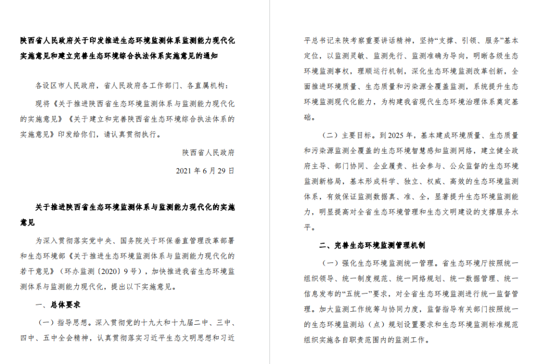 10、《陜西省人民政府關(guān)于印發(fā)推進(jìn)生態(tài)環(huán)境監(jiān)測體系監(jiān)測能力現(xiàn)代化實施意見和建立完善生態(tài)環(huán)境綜合執(zhí)法體系實施意見的通知》