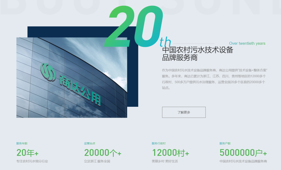 商達(dá)公用作為山東公用控股在鄉(xiāng)村環(huán)境領(lǐng)域的投資發(fā)展平臺(tái),成立于2000年,深耕于農(nóng)村污水細(xì)分行業(yè)20年。主要業(yè)務(wù)范圍是以農(nóng)村污水治理為核心的鄉(xiāng)村環(huán)境資源治理與開發(fā)等方面為主。在鄉(xiāng)村環(huán)境領(lǐng)域,以EEM菌微生物技術(shù)為核心,提供農(nóng)村污水生態(tài)價(jià)值化“技術(shù)設(shè)備+整體方案”服務(wù),通過生態(tài)產(chǎn)業(yè)循環(huán)模式,踐行綠水青山就是金山銀山理念,實(shí)現(xiàn)環(huán)境價(jià)值導(dǎo)向開發(fā),助力鄉(xiāng)村振興。20年來,已累計(jì)為全國12000個(gè)村500萬戶提供污水治理服務(wù),運(yùn)營全國20個(gè)區(qū)縣的20000個(gè)站點(diǎn)。在E2O的村鎮(zhèn)污水處理年度盤點(diǎn)中,商達(dá)公用農(nóng)村污水處理總規(guī)模、設(shè)備供應(yīng)總規(guī)模排名第一。2020年,商達(dá)公用被評(píng)為農(nóng)村污水 “隱形冠軍”培育企業(yè);2021年,商達(dá)公用被評(píng)為浙江省“專精特新”企業(yè);2022年,商達(dá)公用榮獲浙江省AAA級(jí)“守合同重信用”企業(yè)稱號(hào)。