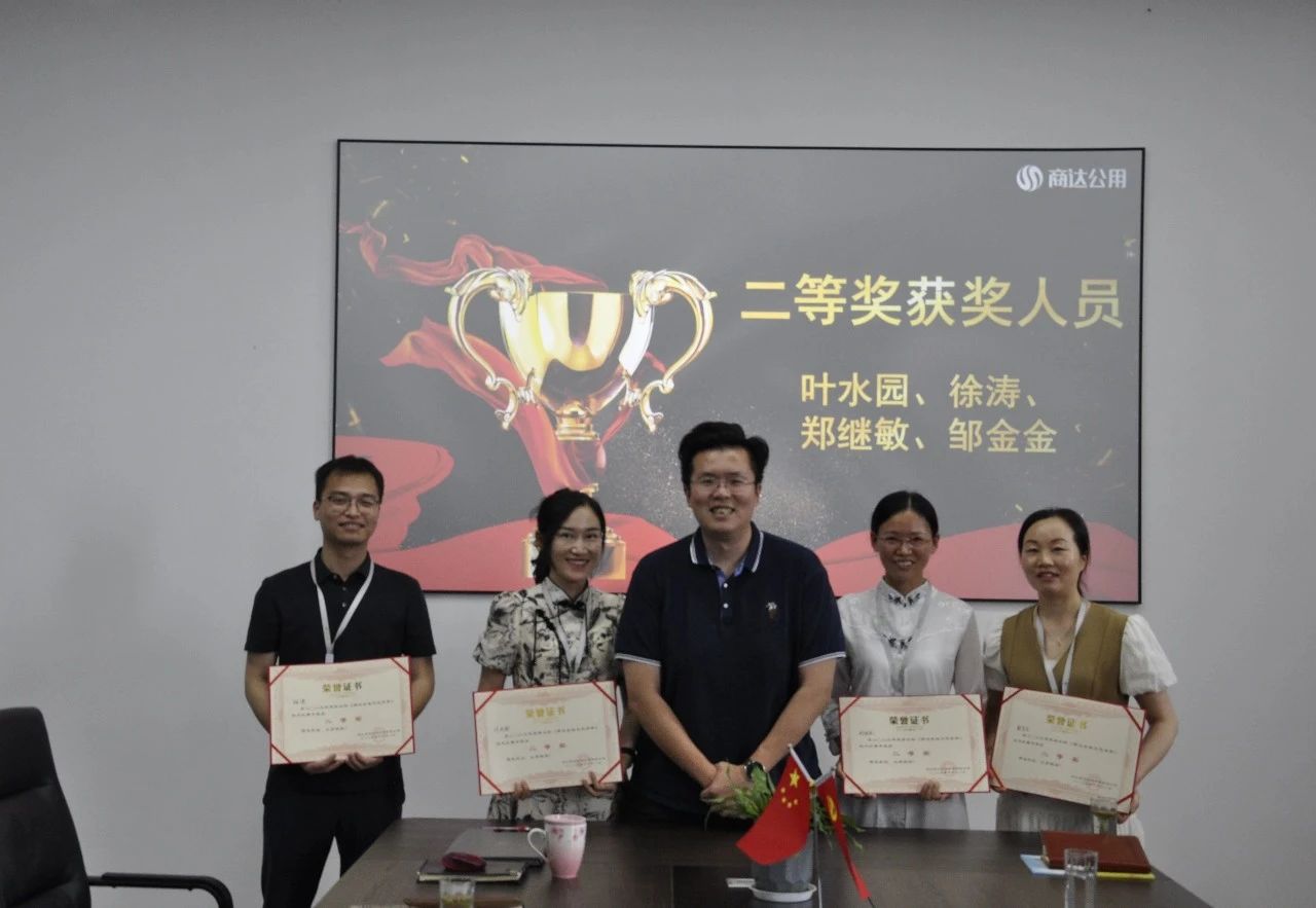 二等獎獲獎人員為總經辦葉水園、設計研究院徐濤、財務中心鄭繼敏和管理中心鄒金金,商達公用董事長助理張毅為其頒獎。