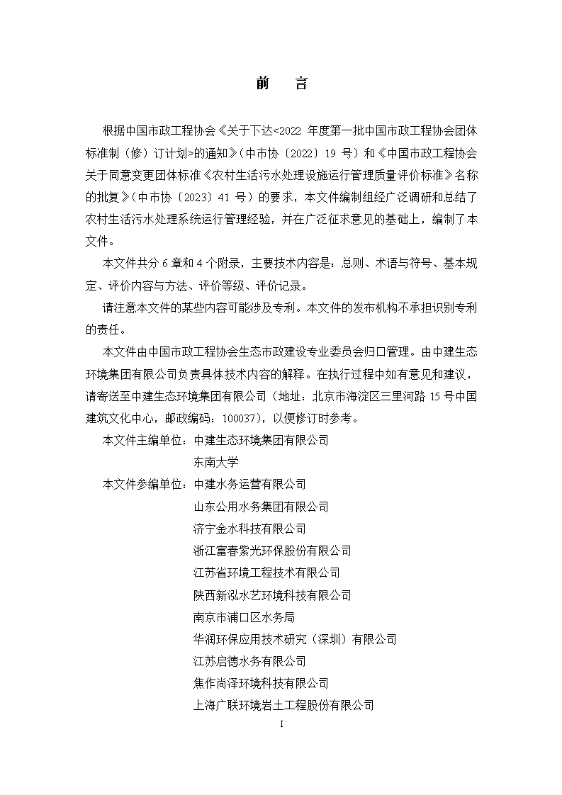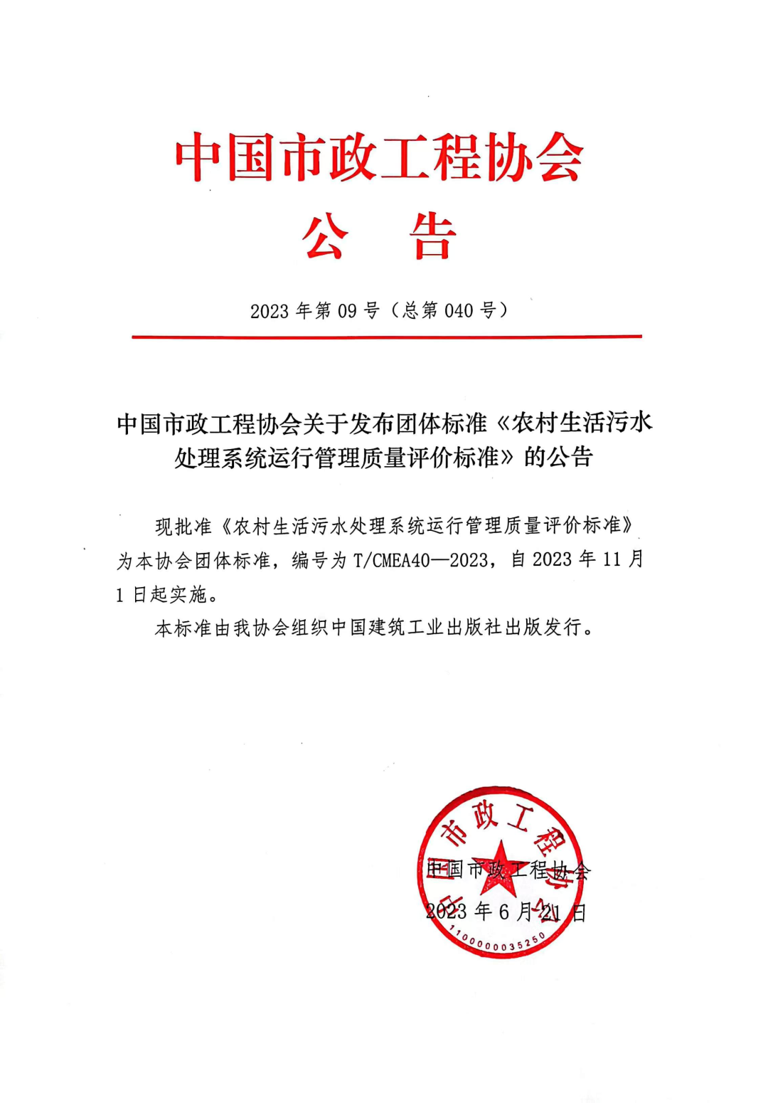 2023年6月21日,首部適用于農(nóng)污系統(tǒng)運(yùn)行質(zhì)量評(píng)價(jià)的標(biāo)準(zhǔn)《農(nóng)村生活污水處理系統(tǒng)運(yùn)行管理質(zhì)量評(píng)價(jià)標(biāo)準(zhǔn)》(T/CMEA 40-2023)(以下簡(jiǎn)稱《標(biāo)準(zhǔn)》)經(jīng)中國(guó)市政工程協(xié)會(huì)批準(zhǔn)發(fā)布,將于2023年11月1日起正式實(shí)施。《標(biāo)準(zhǔn)》主要規(guī)定了農(nóng)村生活污水處理系統(tǒng)運(yùn)行管理質(zhì)量的評(píng)價(jià)體系、評(píng)價(jià)內(nèi)容與方法等,涵蓋了質(zhì)量管理體系、日常運(yùn)行基礎(chǔ)管理、收集系統(tǒng)運(yùn)行維護(hù)、污水處理設(shè)施運(yùn)行維護(hù)、水質(zhì)管理和公眾服務(wù)滿意6個(gè)要素、30個(gè)指標(biāo)?!稑?biāo)準(zhǔn)》適用于處理規(guī)模在500m3/d及以下的農(nóng)村生活污水處理系統(tǒng)的運(yùn)行管理質(zhì)量評(píng)價(jià)。《標(biāo)準(zhǔn)》編制團(tuán)隊(duì)通過(guò)廣泛調(diào)研并總結(jié)主編、參編單位在農(nóng)村生活污水治理方面的運(yùn)營(yíng)實(shí)踐經(jīng)驗(yàn),充分考慮農(nóng)村生活污水處理系統(tǒng)的固有特性,針對(duì)治理效果、管理質(zhì)量、村民滿意度等方面建立了全面科學(xué)的評(píng)估體系,首次實(shí)現(xiàn)了對(duì)不同地區(qū)農(nóng)村生活污水處理系統(tǒng)運(yùn)行管理質(zhì)量的量化比較,明確了評(píng)價(jià)對(duì)象的等級(jí)劃分要求?!稑?biāo)準(zhǔn)》有效充實(shí)和完善了我國(guó)農(nóng)村生活污水治理標(biāo)準(zhǔn)體系,對(duì)于改善當(dāng)前我國(guó)農(nóng)村生活污水處理系統(tǒng)重建設(shè)、輕運(yùn)營(yíng)的現(xiàn)狀,提高農(nóng)村生活污水處理系統(tǒng)運(yùn)行管理和績(jī)效水平具有指導(dǎo)意義。該標(biāo)準(zhǔn)可指導(dǎo)農(nóng)村生活污水處理系統(tǒng)運(yùn)行管理單位開展自我評(píng)價(jià),也為管理部門或第三方機(jī)構(gòu)評(píng)估農(nóng)村生活污水處理系統(tǒng)運(yùn)行管理質(zhì)量提供了重要的方法依據(jù)。下一步,中國(guó)市政工程協(xié)會(huì)生態(tài)市政建設(shè)專業(yè)委員會(huì)將以該標(biāo)準(zhǔn)提出的評(píng)價(jià)方法為依據(jù),開展農(nóng)村生活污水處理系統(tǒng)運(yùn)行管理質(zhì)量的認(rèn)證評(píng)價(jià)工作。該標(biāo)準(zhǔn)由中建生態(tài)環(huán)境集團(tuán)有限公司、東南大學(xué)主編,中建水務(wù)運(yùn)營(yíng)有限公司、山東公用水務(wù)集團(tuán)有限公司、濟(jì)寧金水科技有限公司、浙江富春紫光環(huán)保股份有限公司、江蘇省環(huán)境工程技術(shù)有限公司、陜西新泓水藝環(huán)境科技有限公司、南京市浦口區(qū)水務(wù)局、華潤(rùn)環(huán)保應(yīng)用技術(shù)研究(深圳)有限公司、江蘇啟德水務(wù)有限公司、焦作尚澤環(huán)境科技有限公司、上海廣聯(lián)環(huán)境巖土工程股份有限公司、溧陽(yáng)中建桑德環(huán)境治理有限公司、江蘇東澤源環(huán)境科技有限公司、華夏碧水環(huán)??萍脊煞萦邢薰尽⒅袊?guó)市政工程中南設(shè)計(jì)研究總院有限公司、溫州大學(xué)、陜西林楓潤(rùn)澤環(huán)境工程技術(shù)有限公司、廣州資源環(huán)??萍脊煞萦邢薰?、福建中科三凈環(huán)保股份有限公司、黃岡金寶馬環(huán)??萍技瘓F(tuán)有限公司、湖北金寶馬環(huán)??萍加邢薰?、江蘇點(diǎn)石工程管理有限責(zé)任公司、ANSO環(huán)境科技產(chǎn)業(yè)聯(lián)盟共計(jì)23家單位參與編制。