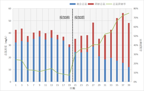 冬季低溫菌劑投加前后總氮變化趨勢(山東濟寧)