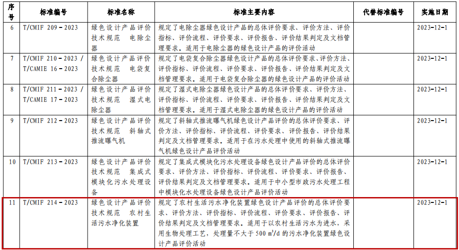 2023年10月10日,根據(jù)《中國機械工業(yè)聯(lián)合會團體標準管理辦法》和《中國機械工業(yè)聯(lián)合會團體標準制定工作細則》的有關(guān)規(guī)定,中國機械工業(yè)聯(lián)合會批準17項中國機械工業(yè)聯(lián)合會團體標準。由商達公用起草主編的T/CMIF 214-2023《綠色設計產(chǎn)品評價技術(shù)規(guī)范 農(nóng)村生活污水凈化裝置》名列榜單,自2023年12月1日起正式實施。