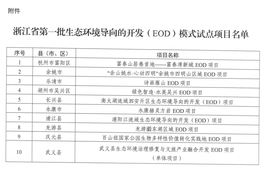 浙江省生態(tài)環(huán)境廳浙江省發(fā)展和改革委員會 國家開發(fā)銀行浙江省分行中國農(nóng)業(yè)發(fā)展銀行 浙江省分行關(guān)于同意開展浙江省第一批生態(tài)環(huán)境導(dǎo)向的開發(fā) (EOD) 模式試點(diǎn)的通知