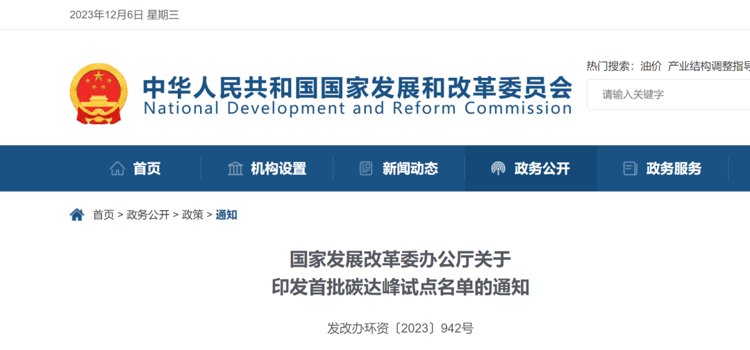 印發(fā)首批碳達(dá)峰試點(diǎn)名單的通知