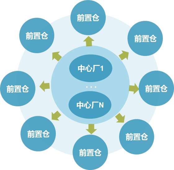 該模式以“下游渠道及終端消費(fèi)客戶(hù)為導(dǎo)向”的商達(dá)公用工廠化循環(huán)水養(yǎng)殖水產(chǎn)品倉(cāng)儲(chǔ)物流體系,以年產(chǎn)超萬(wàn)噸級(jí)別大型漁倉(cāng)為中心廠,以物流半徑1000公里為輻射圈,以下游渠道及消費(fèi)群體聚集城市群為節(jié)點(diǎn)構(gòu)建前置漁倉(cāng),形成完整的漁品倉(cāng)儲(chǔ)物流網(wǎng),支撐“次日達(dá)”、“當(dāng)日達(dá)”,保障漁品品質(zhì)(新鮮度)的重要體系。