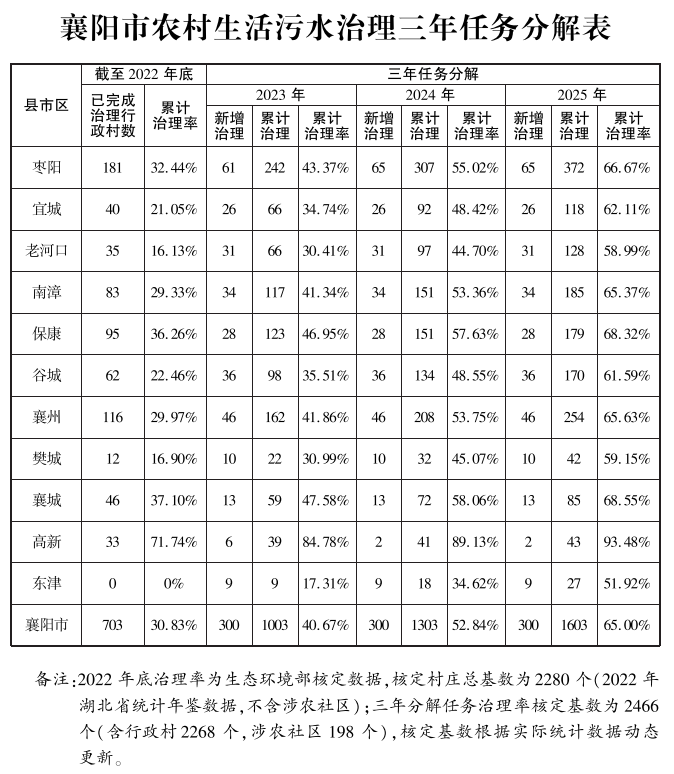 襄陽市人民政府辦公室關(guān)于印發(fā)襄陽市農(nóng)村生活污水治理三年行動方案(2023—2025年)的通知