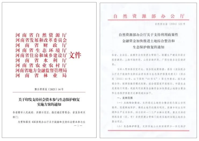 ·2024年3月,自然資源部辦公廳《關(guān)于支持利用政策性金融資金加快推進(jìn)土地綜合整治和生態(tài)保護(hù)修復(fù)的通知》(自然資辦函〔2024〕522號)提出政策性金融機(jī)構(gòu)立足職能定位,通過為項(xiàng)目提供信貸服務(wù)方式對土地綜合整治和生態(tài)保護(hù)修復(fù)項(xiàng)目提供資金支持。